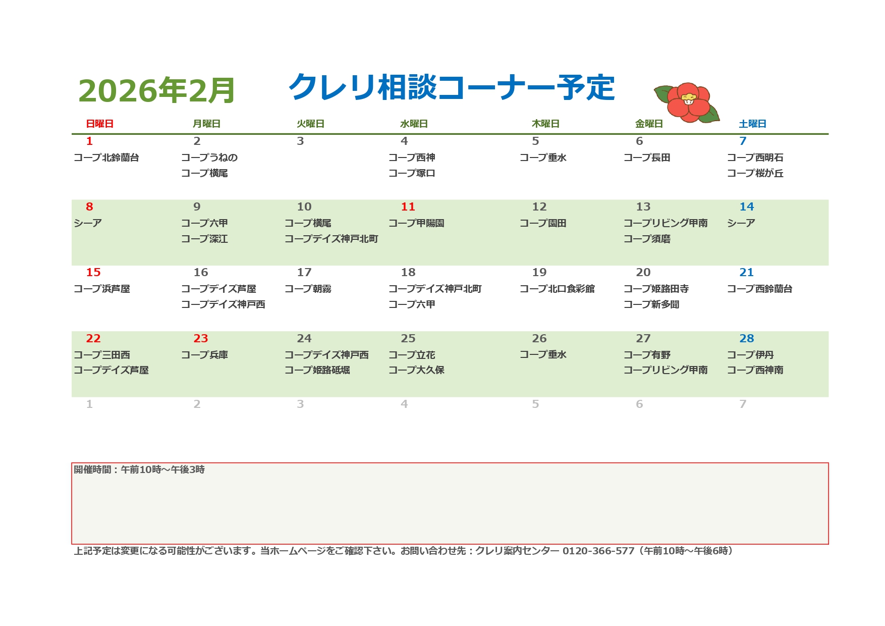 2026年2月のクレリ相談コーナー予定