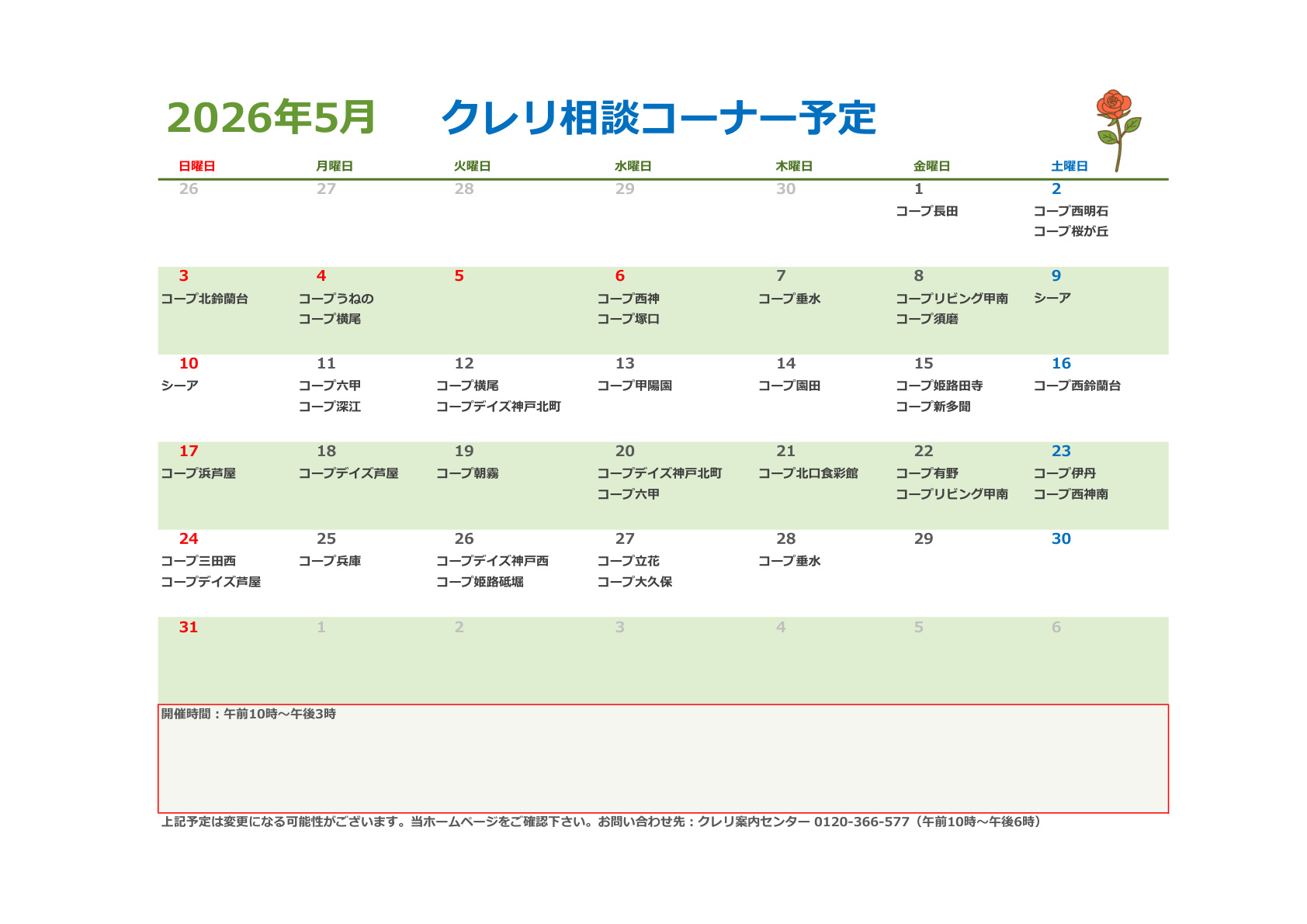 2026年5月のクレリ相談コーナー予定